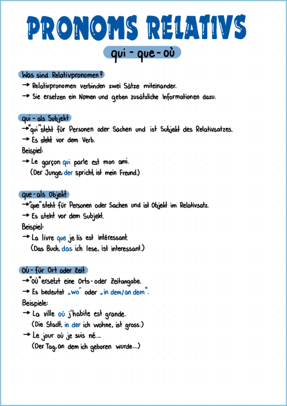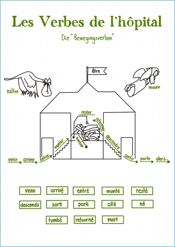 Französisch Zeiten Présent Passé Composé Passé composé mit être L’imparfait Le plus-que-parfait 1 Le plus-que-parfait 2 Le futur simple Zeitformen Verben Les verbes pronominaux Les verbes de l’hôpital Pronomen pronoms relativs COI und COD Gramatik und Ausdruck Les prépositions de lieu 1 Les prépositions de lieu 2 Mengenangaben Verneinung